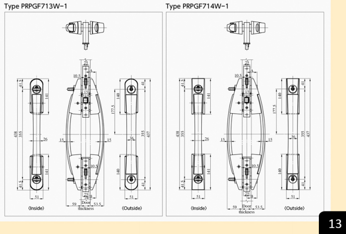 Bản vẽ khóa cửa chính tay đẩy lớn MIWA_U9PGF714W